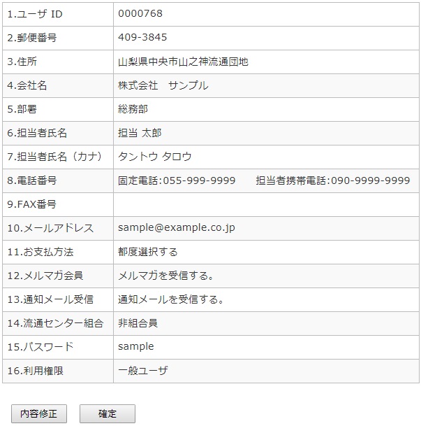 変更内容を修正する場合は、内容修正ボタンを押して下さい。