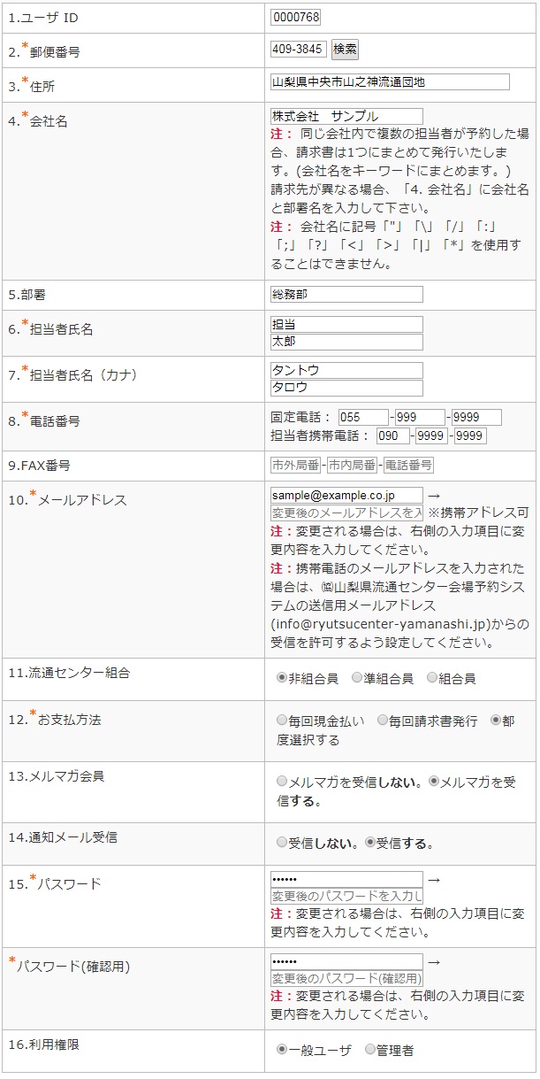 固定電話:お客様の固定電話番号 担当者携帯電話:予約申込担当者の携帯電話番号 |